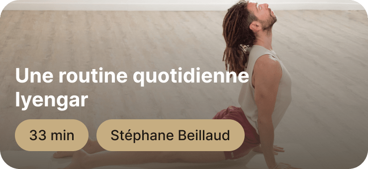 - On découvre (et peut-être qu’on l’adopte !) la routine Iyengar de Stéphane, qui permet de s’aligner et de travailler intensément dans la lenteur