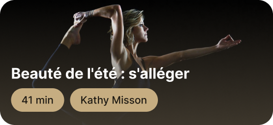 On s’allège le corps et l’esprit ! Avec la joyeuse et lumineuse Katy Misson, on attaque cette semaine un programme légèreté qui fait partie de son catalogue de vidéos dédiées à la beauté estivale. Deux cours dans la semaine, et hop on est belle et légère pour le printemps !