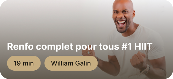 Devinez qui est de retour sur notre challenge?... le beau William Galin et son incroyable capacité à nous faire faire des exercices qu’on déteste ! Soyez courageux, piochez 3 cours parmi son riche programme de renfo pour tout le corps … c’est du HIIT accessible à tous, il suffit d’être motivé :-)