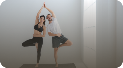 Posture de l'Arbre en Duo : Améliore l'équilibre et la concentration, tout en favorisant l'union des énergies. La Pince en Double : Favorise la flexibilité du dos et des jambes, tout en permettant un moment de connexion intime. Le Guerrier Assisté : Renforce la confiance et soutient l'équilibre, idéal pour renforcer le soutien mutuel.